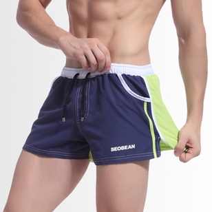 Мужские шорты купальные синие с зеленой вставкой Seobean Navy