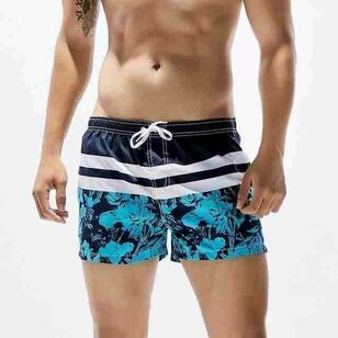 Мужские пляжные шорты бело-синие с цветочным принтом SEOBEAN
